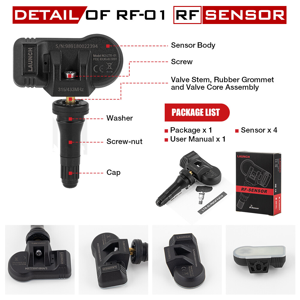 LAUNCH LTR-01 RF 센서는 수리장 또는 타이어 가게에 대한 최고의 TPMS 솔루션을 제공하기 위해 99% 차량 커버리지를 제공하는 LAUNCH 자체 설계 및 생산 RF 센서입니다.