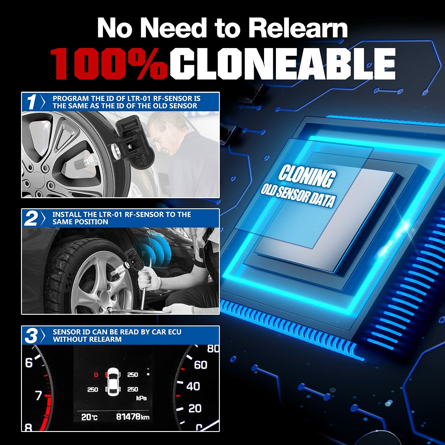 2 IN 1 (315MHz + 433MHz): 거의 모든 TPMS 장착 차량을 수리하기 위해 1개의 센서만 있으며 수리 비용을 낮추고 재학습 필요없이 더 높은 설치 효율성을 가지고 있습니다.RF 센서는 원래 센서 ID로 100% 클로닝 가능하며 동일한 위치에 넣습니다.